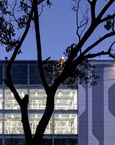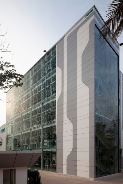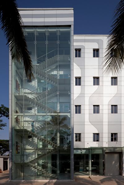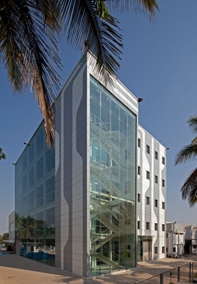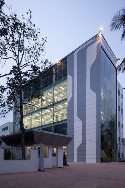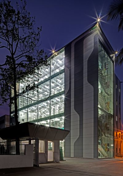 The design comprised a defined structural grid in steel which became a prominent aesthetic feature. The building facade had to be transparent on two sides to allow views from the street and create an impression of a gallery.The extent of steel used in the structure combined with the machines installed on every floor became the second elevation.