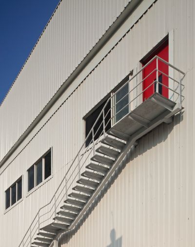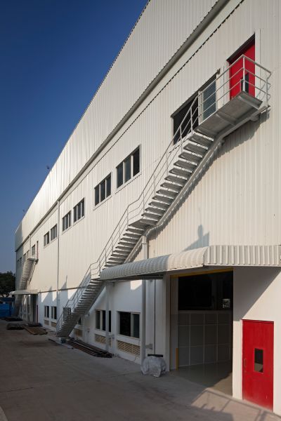Proposed a structural column grid that enabled efficient space utilization. Extended canopy connecting the new facility to the old became the primary design feature on the exterior. The structural grid and the steel staircases became the primary design elements on the inside of the factory.