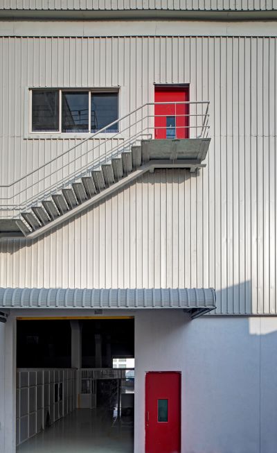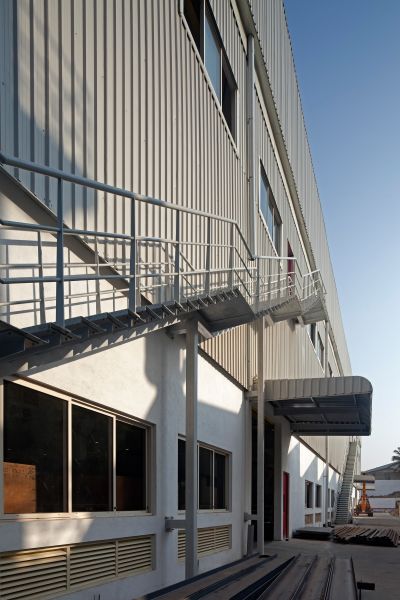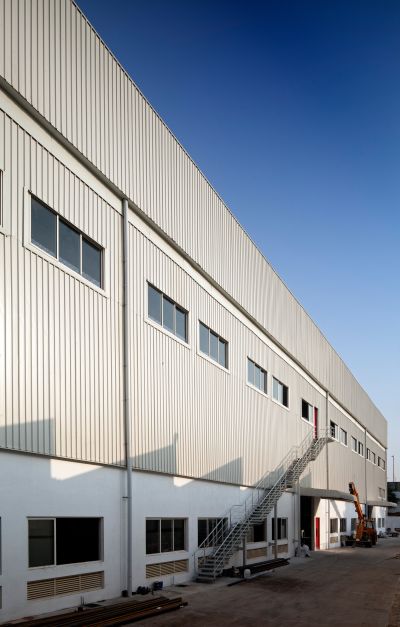 The factory has two levels of manufacturing and had to meet all the technical norms of an industrial building. A long canopy on its’ west side connects the new facility with the old one and aesthetically breaks away from the usual canopies seen in industrial facilities.